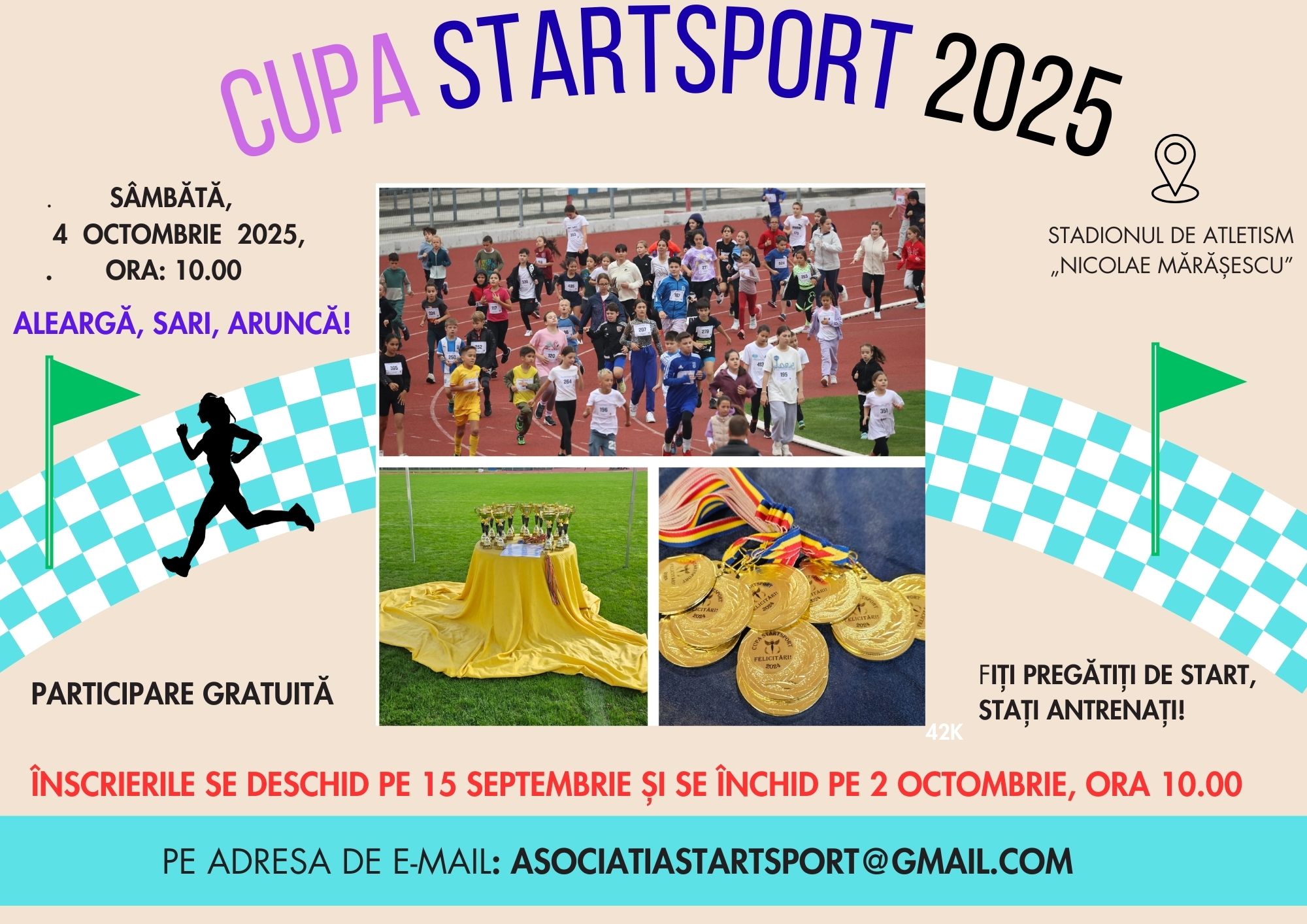 – CUPA STARTSPORT 2025 – Ediția a IV-a – vă așteaptă la start într-un număr cât mai mare. Se adresează tuturor copiilor și adolescenților, legitimați și nelegitimați, cu un singur obiectiv: ALEARGĂ, SARI, ARUNCĂ!