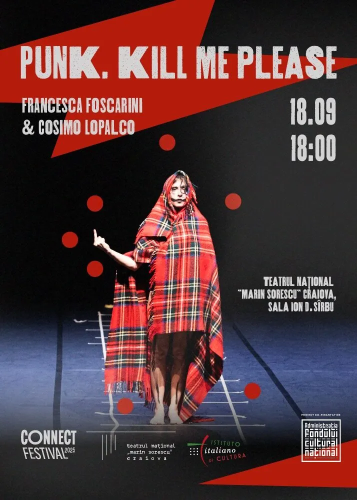 Spectacolul ”PUNK. Kill me please” este prezentat în cadrul Festivalului de Dans Contemporan CONNECT, ediția a 4-a, organizat de Asociația Delazero, cu sprijinul Institutului Italian de Cultură din București și al Teatrului Național ”Marin Sorescu” Craiova. Proiectul este cofinanțat de Administrația Fondului Cultural Național și nu reprezintă în mod necesar poziţia Administrației Fondului Cultural Național. AFCN nu este responsabilă de conținutul proiectului sau de modul în care rezultatele proiectului pot fi folosite. Acestea sunt în întregime responsabilitatea beneficiarului finanțării.