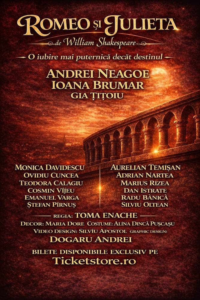 Cea mai cunoscută poveste de iubire din lume revine într-o montare spectaculoasă semnată de regizorul Toma Enache, creatorul succesului „O scrisoare pierdută”, realizat împreună cu aceeași echipă artistică si acelasi producator, apreciată de public.
