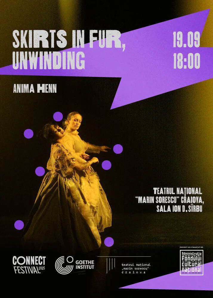 Spectacolul ”Skirts in Fur, Unwinding” este prezentat în cadrul Festivalului de Dans Contemporan CONNECT, ediția a 4-a și organizat de Asociația Delazero, cu sprijinul Goethe-Institut București și al Teatrului Național ”Marin Sorescu” Craiova. Proiectul este cofinanțat de Administrația Fondului Cultural Național și nu reprezintă în mod necesar poziţia Administrației Fondului Cultural Național. AFCN nu este responsabilă de conținutul proiectului sau de modul în care rezultatele proiectului pot fi folosite. Acestea sunt în întregime responsabilitatea beneficiarului finanțării.