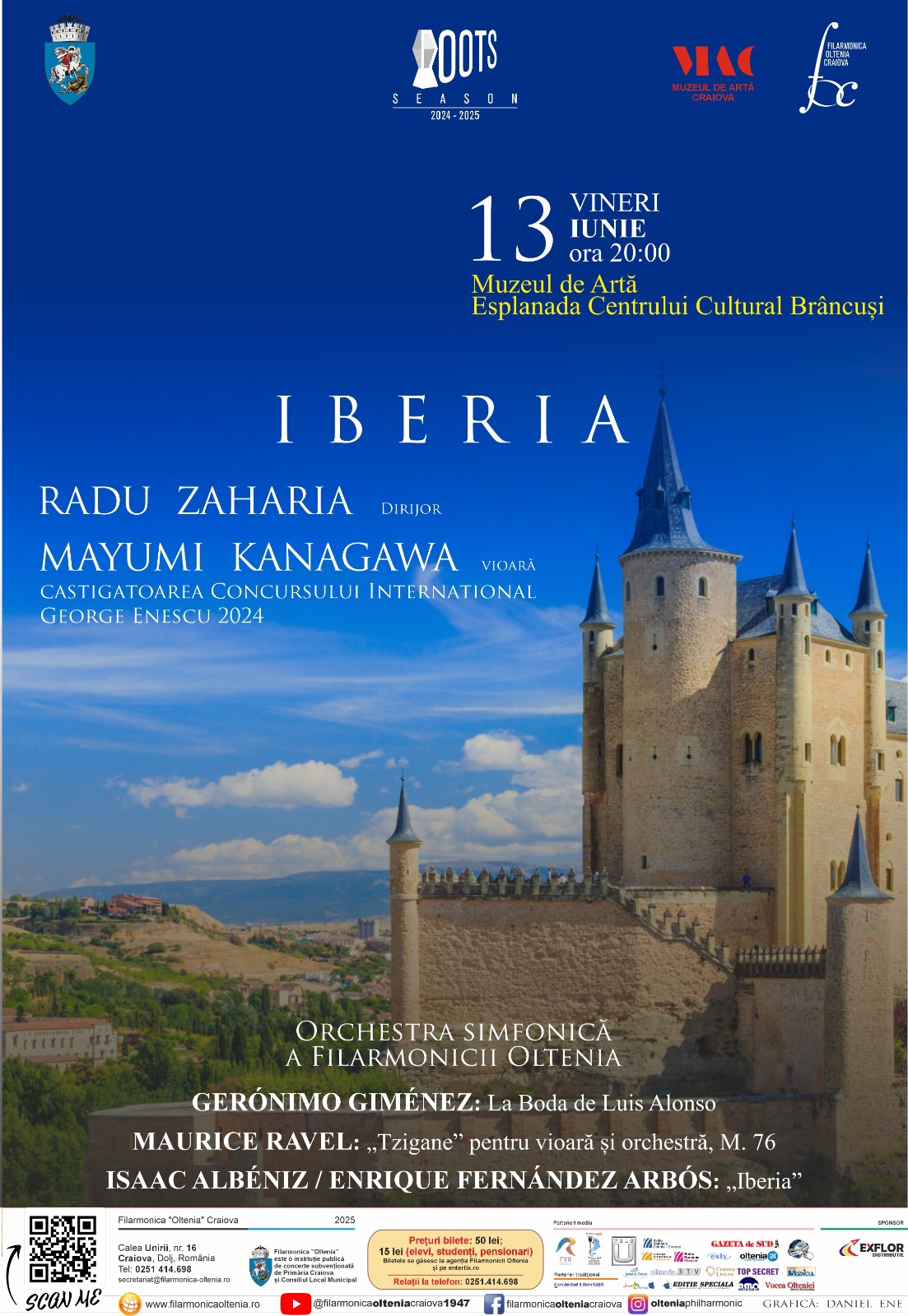 Muzeul de Artă Craiova Calea Unirii, nr. 15, Craiova, Dolj, RomâniaVINERI, 13 IUNIE 2025, ORA 20:00 - Muzeul de Artă, Esplanada Centrului Cultural BrâncușiConcert IBERIAORCHESTRA SIMFONICĂ A FILARMONICII „OLTENIA”-DIRIJOR: RADU ZAHARIA- SOLISTĂ: MAYUMI KANAGAWA (vioară, JAPONIA), câștigătoarea Concursului Internațional GEORGE ENESCU 2024———În program:- Gerónimo Giménez: La Boda de Luis Alonso- Maurice Ravel: Rapsodia „Tzigane” pentru vioară și orchestră- Isaac Albéniz/Enrique Fernández Arbós: Suita simfonică „Iberia”——— Rezervați...