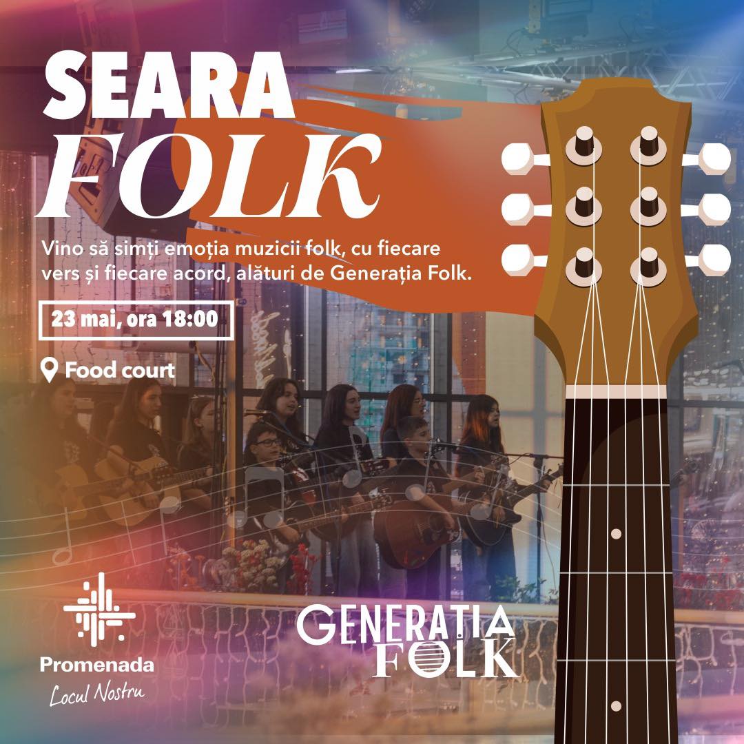 Promenada Mall Calea Severinului 61, Craiova, Dolj, RomâniaTradiția continuă: Seara Folk revine la Promenada Craiova! Pe 23 mai, ora 18:00, vino în zona Vatra Romana (food court) să asculți live Generația Folk. Participarea este gratuită, iar emoțiile sunt garantate!