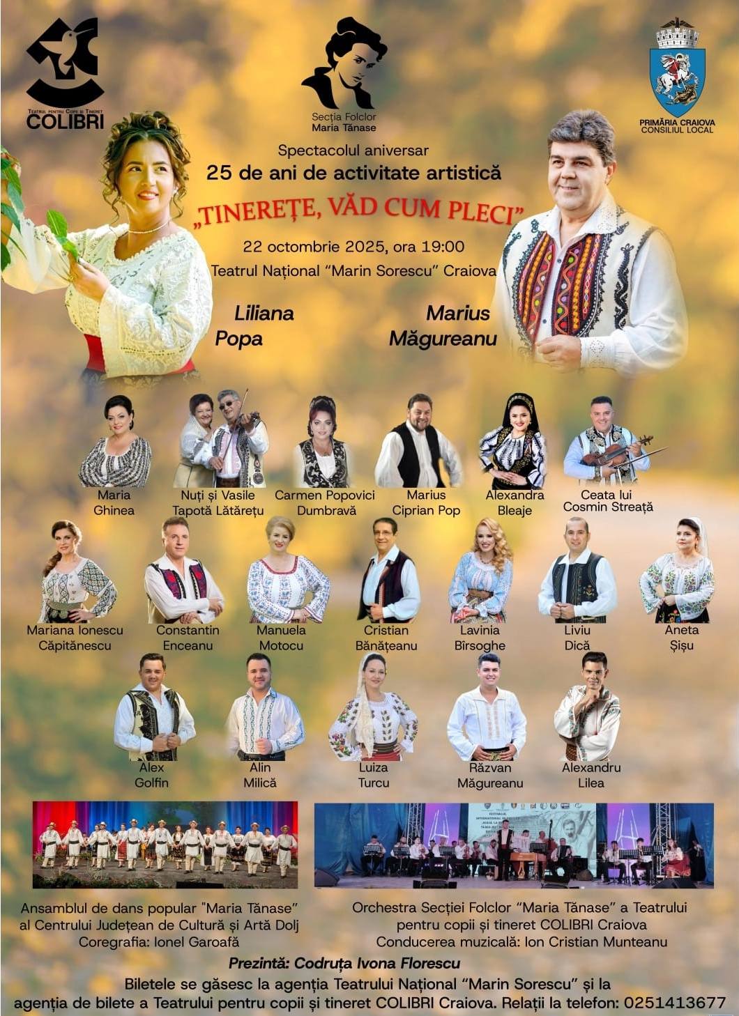 Teatrul pentru copii și tineret Colibri Calea București, nr. 56, Craiova, Dolj, RomâniaTeatrul pentru copii și tineret Colibri - Secția Folclor „Maria Tănase“, în parteneriat cu Centrul Județean de Cultură și Artă Dolj - Ansamblul de dans popular „Maria Tănase” vă invită la spectacolul “Prazul, zaibărul și ciușca”, ce se va desfăşura în data de 21 martie 2024, de la ora 19:00 pe scena Teatrului Colibri.Spectacolul va...